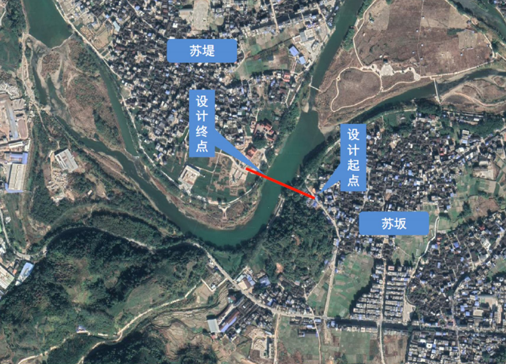 聯(lián)虹大橋位于蘇堤村和蘇坂村交界處,跨穆陽溪將蘇堤社區(qū)與蘇坂社區(qū)連接,起點位于規(guī)劃路與蘇坂村現(xiàn)狀路銜接處,終點與規(guī)劃蘇堤村路相銜接。聯(lián)虹大橋橋長124.5米,總凈跨116m,橋面寬25m。大橋共有5跨組成,0#橋臺與1#橋墩單跨20.5m,4#橋墩與5#橋臺單跨20.5m,1#-4#橋墩之間3跨,單跨均為25m,上部結(jié)構(gòu)鋼筋砼異性板/預(yù)應(yīng)力砼T梁,下部結(jié)構(gòu)柱式墩配樁基礎(chǔ)。聯(lián)虹大橋總共有4組橋墩位于河道的河槽內(nèi),每組4根,每根橋墩直徑為1.3m,每組橋墩布置方向與水流方向夾角為0°,設(shè)計梁底最低高程為33.6m,橋面寬度為25m,橋臺處高程高于現(xiàn)狀道路。