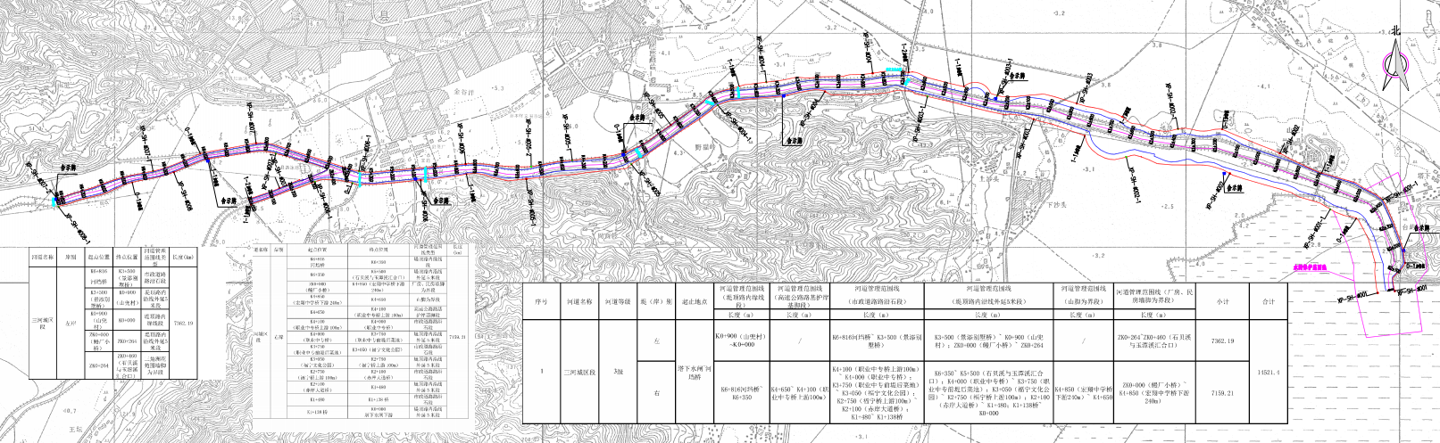 霞浦縣三河城區(qū)段河道管理范圍劃定工作實(shí)施方案僅對(duì)霞浦縣河務(wù)中心管理范圍內(nèi)的三河城區(qū)段河道進(jìn)行劃定,下游從現(xiàn)狀入??诘乃滤l開始,上游左支流石貝溪至匯合口以上1.334 km的河垱橋,右支流玉潭溪至匯合口以上0.4km。石貝溪、玉潭溪二支流上游河段屬街道、村管理,不納入本次實(shí)施方案劃定范圍。塔下水閘現(xiàn)階段仍在運(yùn)行,納入本次劃定范圍。本次實(shí)施方案不涉及范圍內(nèi)的確權(quán)工作,河道管理范圍劃界總長(zhǎng) 14.80km,總面積828.14畝。其中河道管理范圍劃界總長(zhǎng)14.04km,總面積791.71畝;水閘管理范圍劃界總長(zhǎng)0.76km,總面積36.43畝。共需布置告示牌8面、公里樁15個(gè)、百米樁17個(gè)和加密樁17個(gè)。