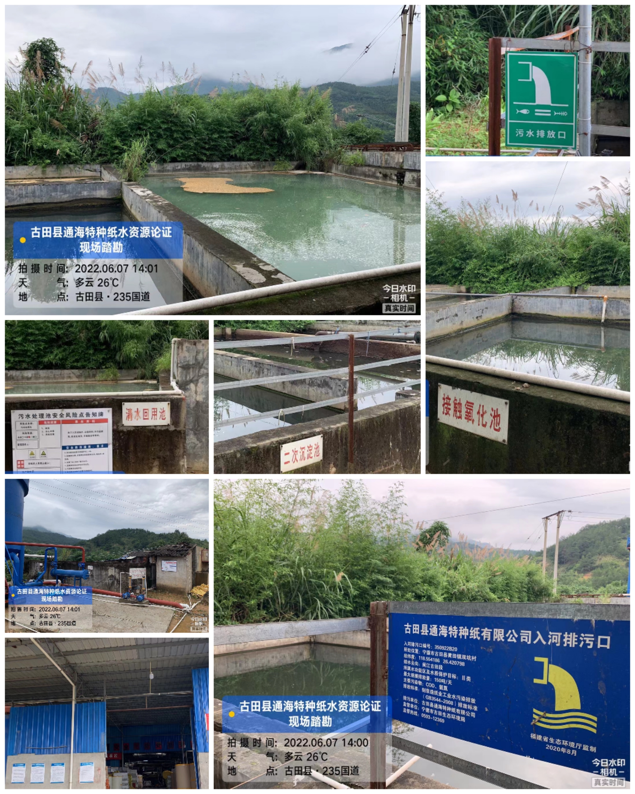 2022年6月7日我司組織技術(shù)人員對古田縣通海特種紙水資源論證開展現(xiàn)場踏勘工作。古田縣通海特種紙有限公司位于古田縣黃田鎮(zhèn)雙坑村炮臺崗(即三都口),已辦理環(huán)評審批及竣工環(huán)保驗(yàn)收手續(xù),并已申領(lǐng)排污許可證,主要從事竹漿紙、黃紙、特等紙、薄頁紙等產(chǎn)品的加工、生產(chǎn)。
