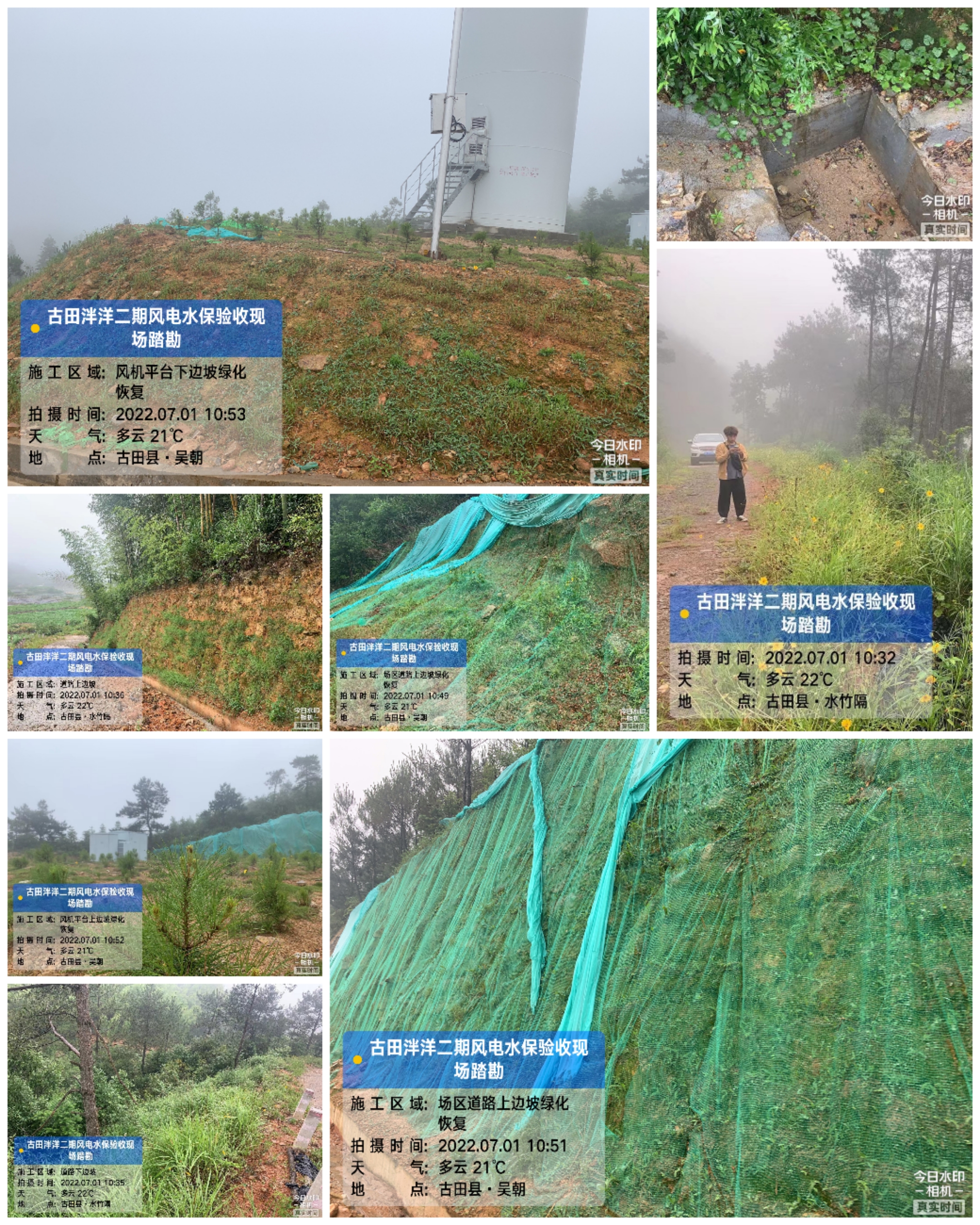 2022年7月1日我司組織技術(shù)人員對古田泮洋二期風電場水土保持設(shè)施驗收項目開展現(xiàn)場踏勘工作。