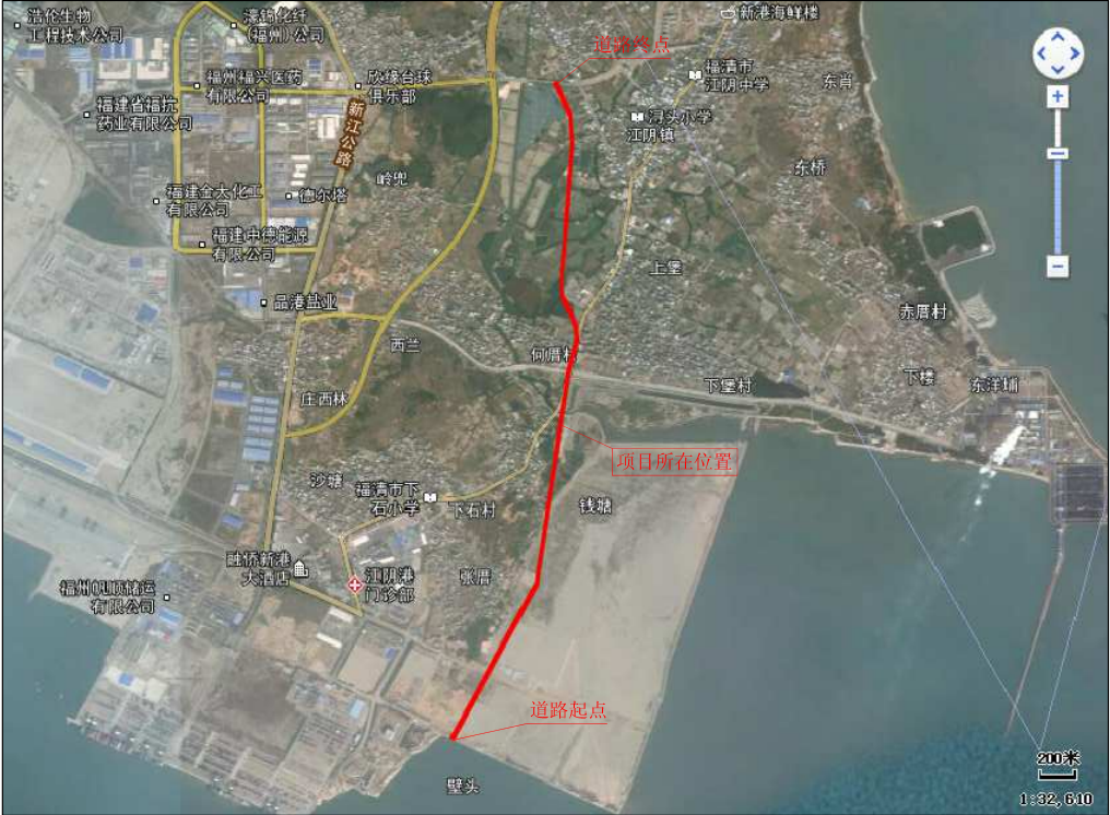 福清濱海大通道江陰大道中段至江陰大道南段公路工程位于福清市江陰鎮(zhèn)。擬建道路為南北走向,起點與港區(qū)大道相交,向北終點止于南港大道東段,道路等級為二級公路兼城市主干道,樁號 K0+000~K0+460(港區(qū)大道東段至港前路東段)紅線寬度為 24m,其余路段規(guī)劃紅線寬度 40m,道路全長約 4.74km,設(shè)計車速 60km/h,雙向 6 車道。項目總占地面積 26.25hm2,其中永久占地 24.71hm2,臨時占地 1.54hm2。