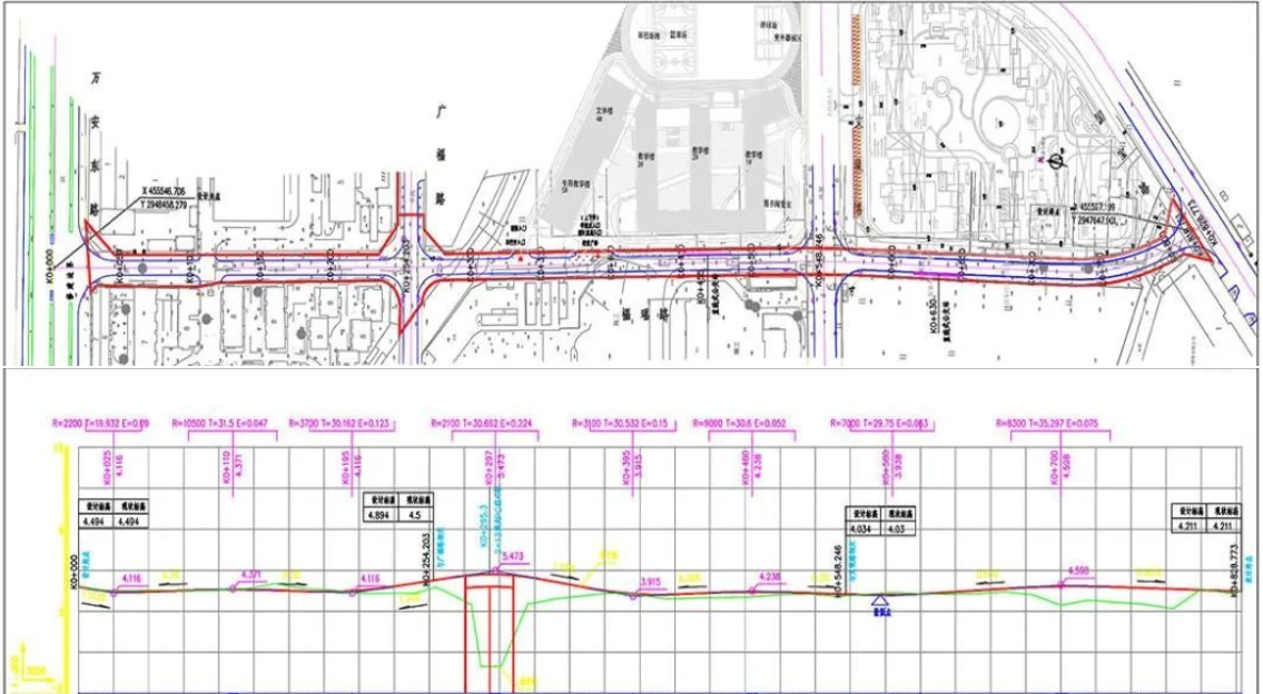 ?,幝罚ㄈf(wàn)安東路至國(guó)寶路)道路工程北起萬(wàn)安東路,南至國(guó)寶路,道路等級(jí)為城市支路,設(shè)計(jì)時(shí)速30km/h,為雙向兩車道,紅線寬度16m。道路長(zhǎng)度828.773m,用地面積14623.749m2。