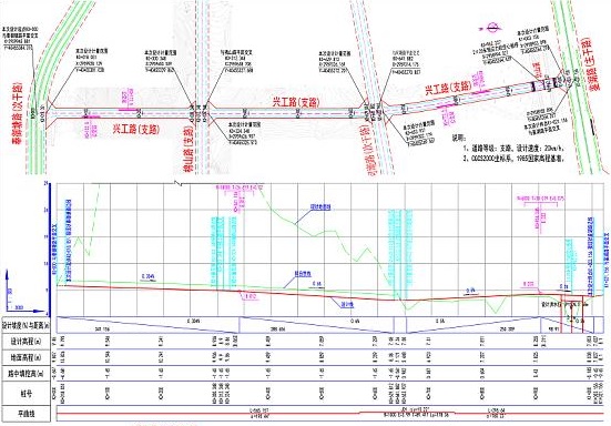 ? ? ? ? 寧德市興工路(奉御塘路至鑒湖路段)道路工程北起奉御塘路,南至鑒湖路,道路等級為城市支路,設(shè)計(jì)時(shí)速20km/h,雙向兩車道,瀝青混凝土路面。道路總長1021.156m,寬18m,用地面積約18438.7m2。