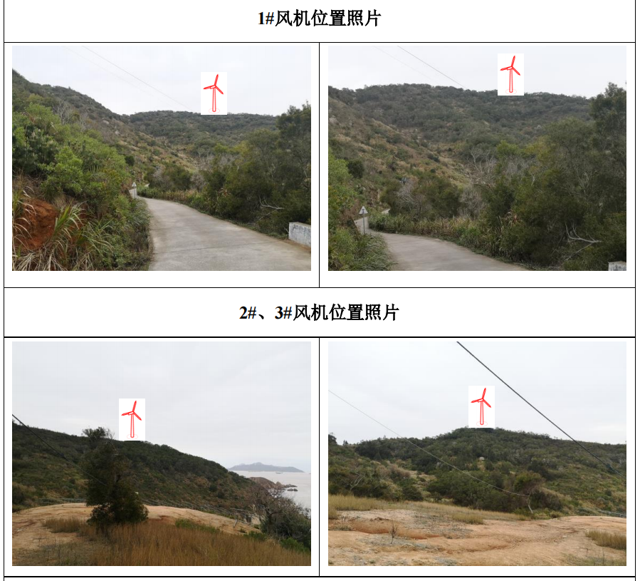 (1)風電系統(tǒng):本項目配置3臺2MW風電機組,風電機組占地0.13hm2;開關站一座,占地0.13hm2,進站道路長65m;新建10kv 電路0.2km,接入西洋島原有電網(wǎng);場區(qū)道路總長1.75km,利用原有道路0.65km,新建道路1.1km。